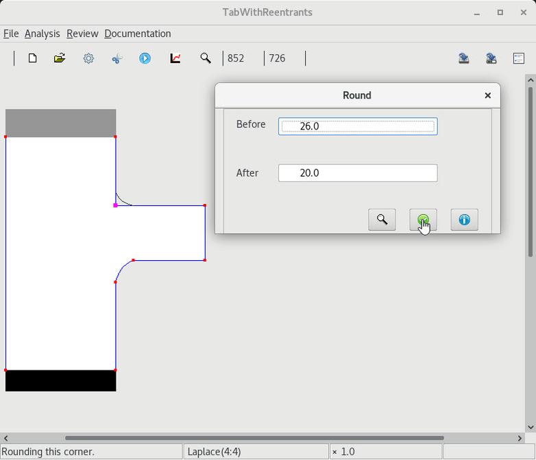 2 Select and round the lower reentrant corner |